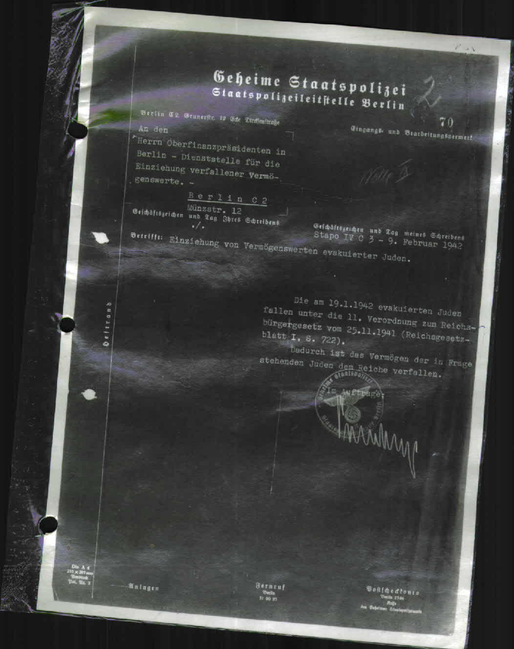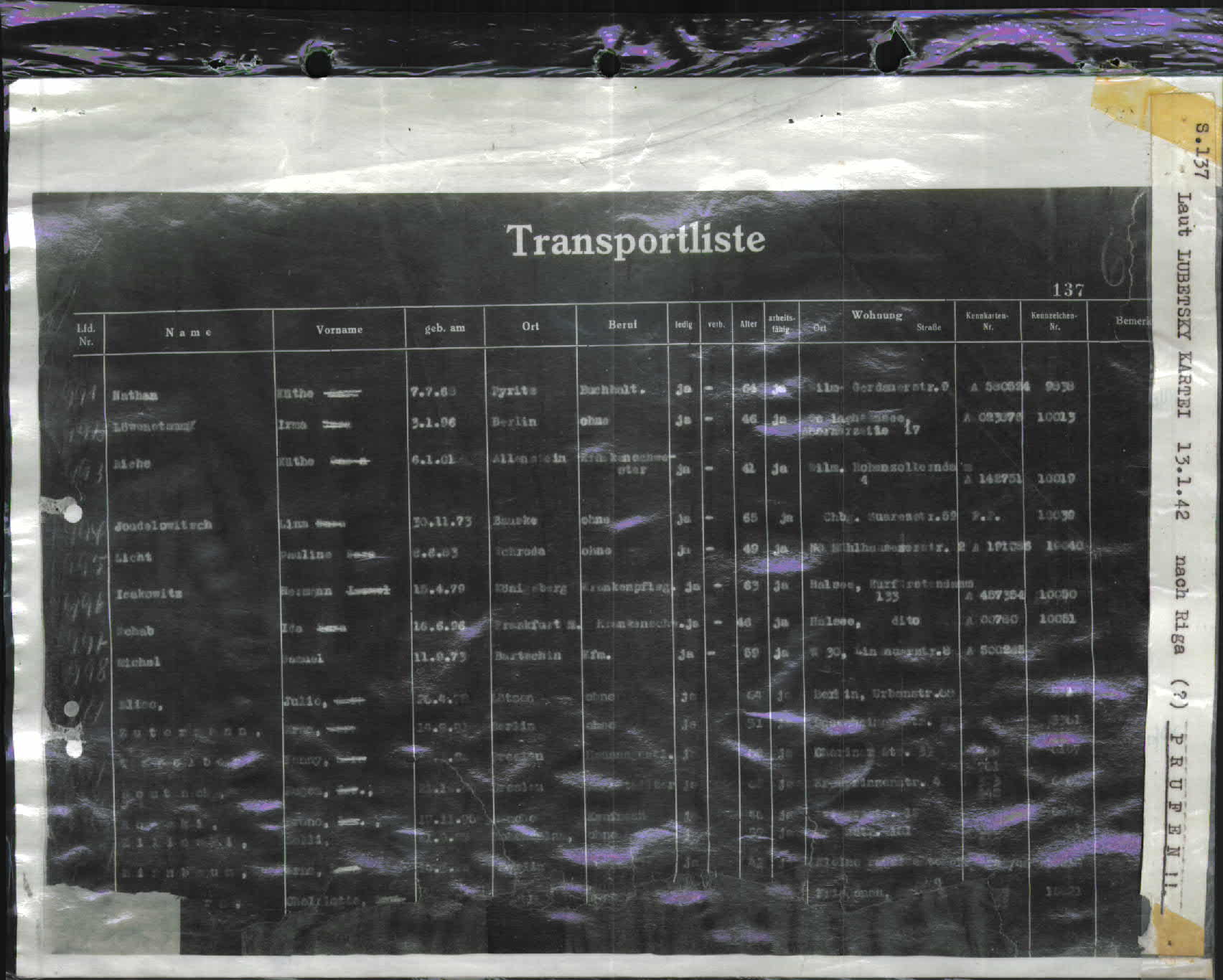 Not long ago I received yet another one of those emails, this time from the United States Holocaust Memorial Museum (USHMM) who I contacted when I was putting the book together. They had gone through their International Tracing Service collection and found my great grandfather’s transport card and documents showing him being deported from Berlin to Riga.